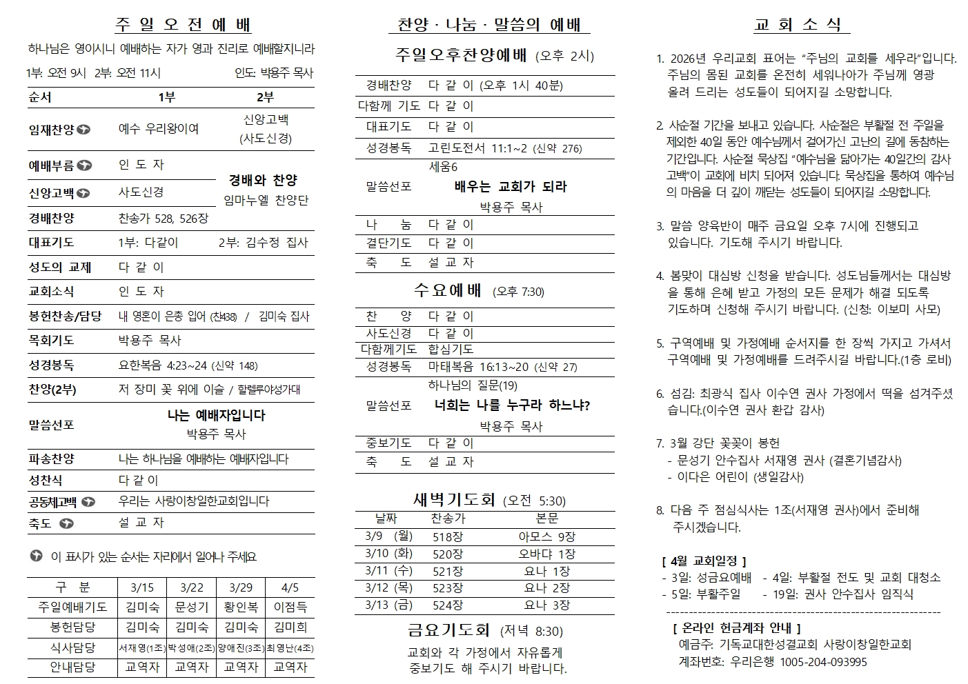 사랑이창일한교회 홈페이지
